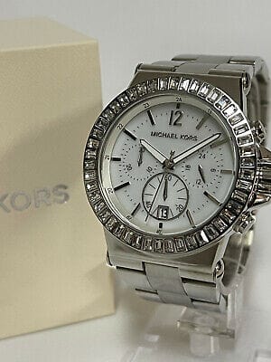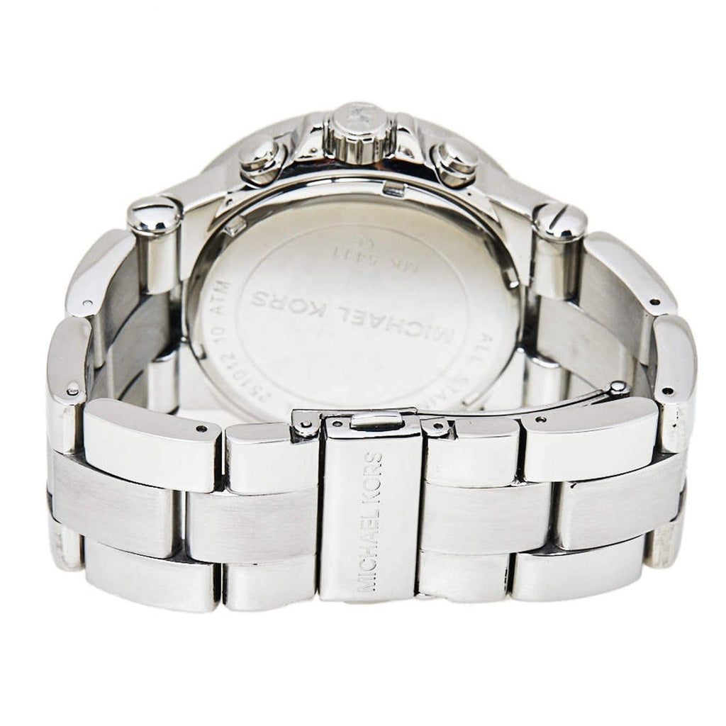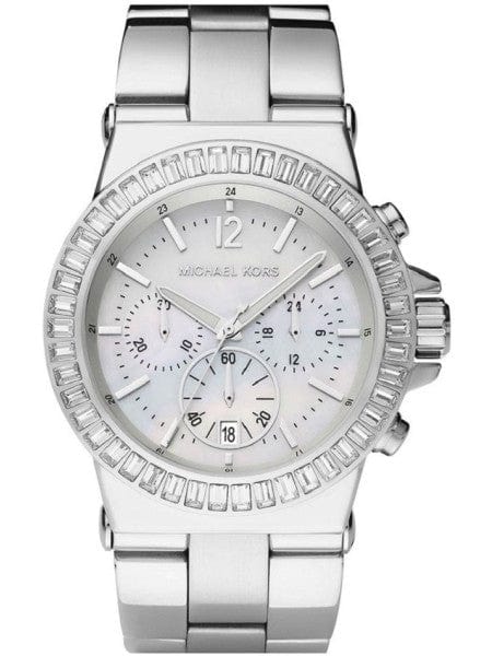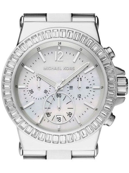 This analogue watch from Michael Kors has a stainless steel strap in silver, complemented by a silver dial. Please note, the dial for the Michael Kors MK5411 ladies' watch has 43 mm in diameter.