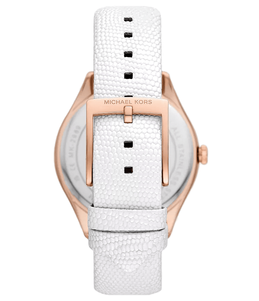Michael Kors Harlowe Analog Rose Gold Dial White Leather Strap Watch For Women - MK2989