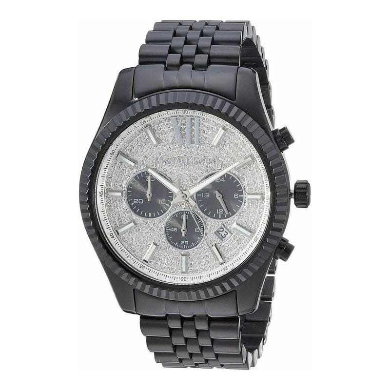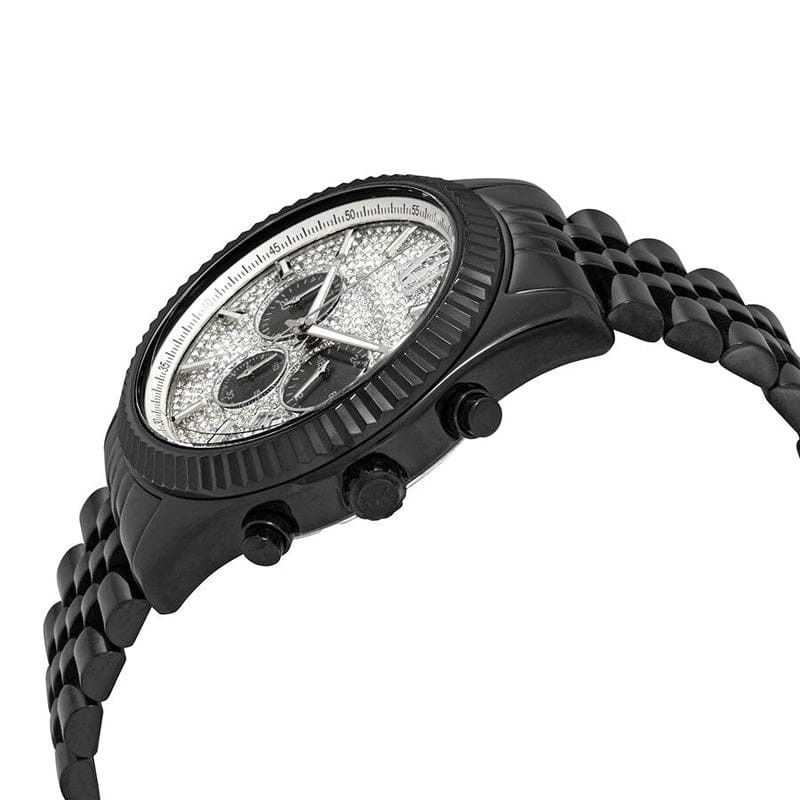 Michael Kors Lexington Chronograph Crystals Silver Dial Black Steel Strap Watch for Men - MK8605