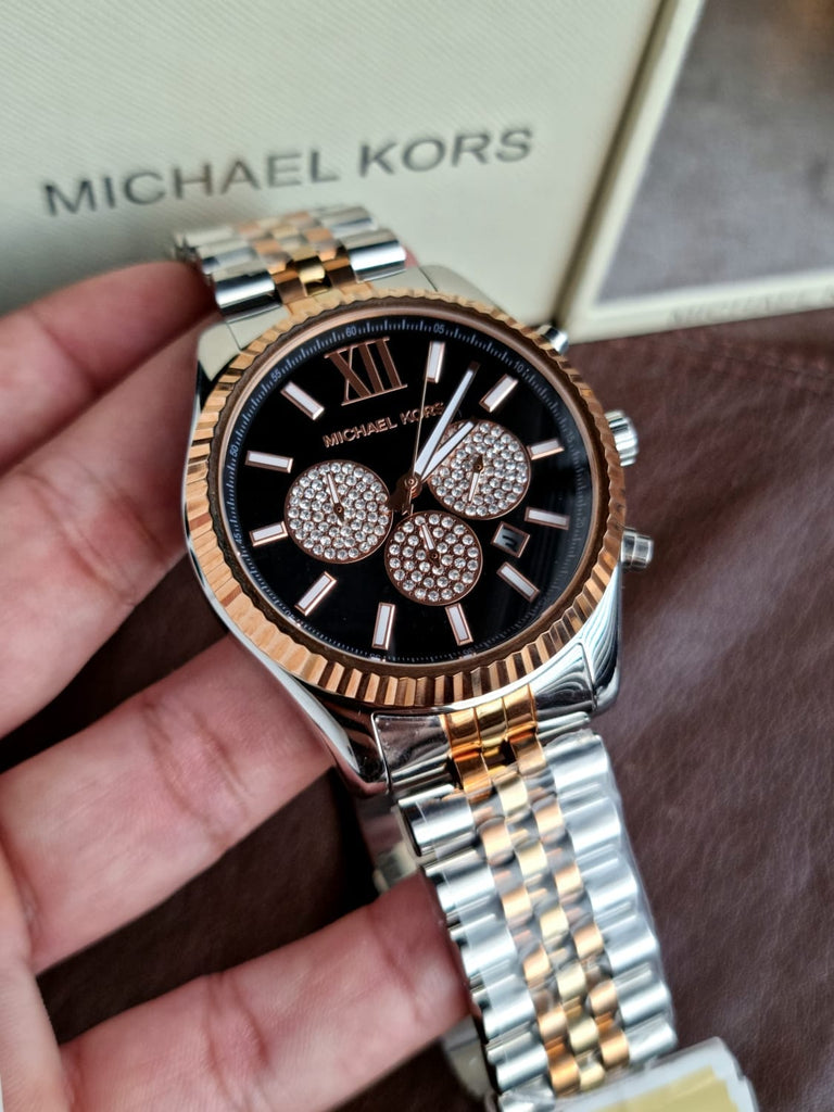 Michael Kors Lexington Chronograph Crystals Black Dial Two Tone Steel Strap Watch for Men - MK8714