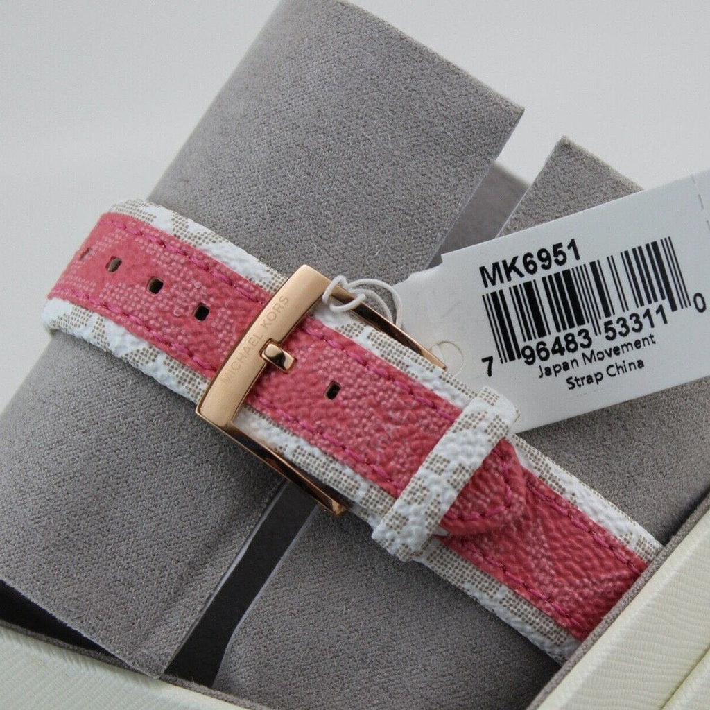 Introducing the Michael Kors Parker Chronograph Tea Rose PVC Leather Watch MK6951, a stylish timepiece that seamlessly combines fashion and functionality. This watch, part of the Parker collection, is known for its elegant designs and modern appeal.