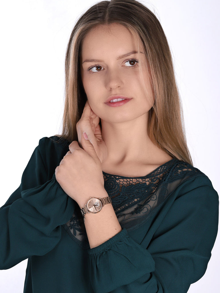 - Band Color: Rose Gold, Band Material: Stainless Steel