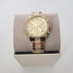 Michael Kors Ritz Chronograph Gold Dial Gold Steel Strap Watch For Women - MK6597