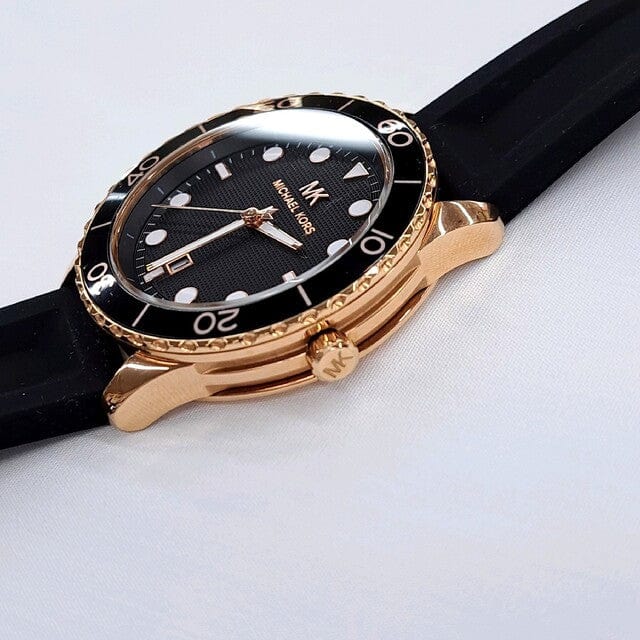 Michael Kors Runway Quartz Black Dial Black Silicone Strap Watch For Women - MK6852