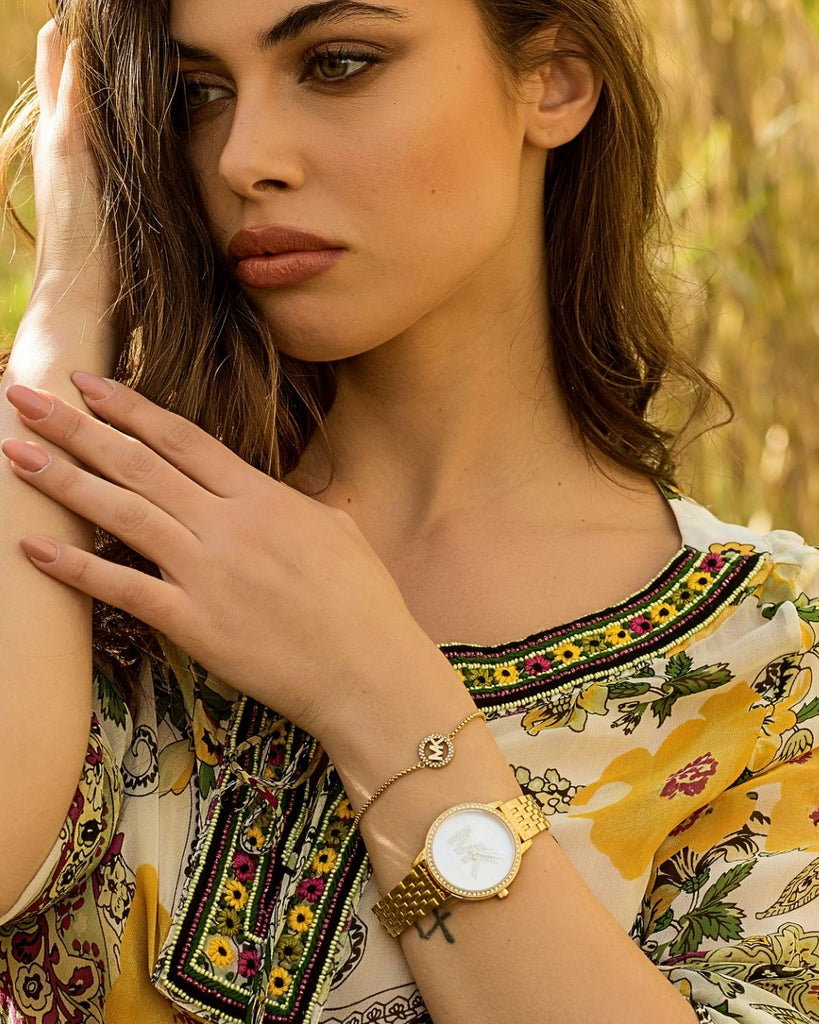 Michael Kors Three Hand Silver Dial Gold Steel Strap Watch for Women - MK1051