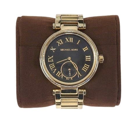 Michael Kors Skylar Black Dial Gold Steel Strap Watch for Women - MK5989