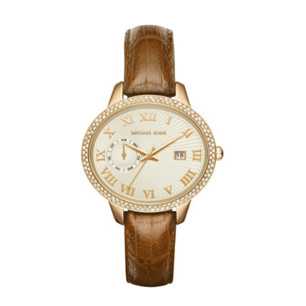 Michael Kors Whitley Quartz Gold Dial Brown Leather Strap Watch For Women - MK2428