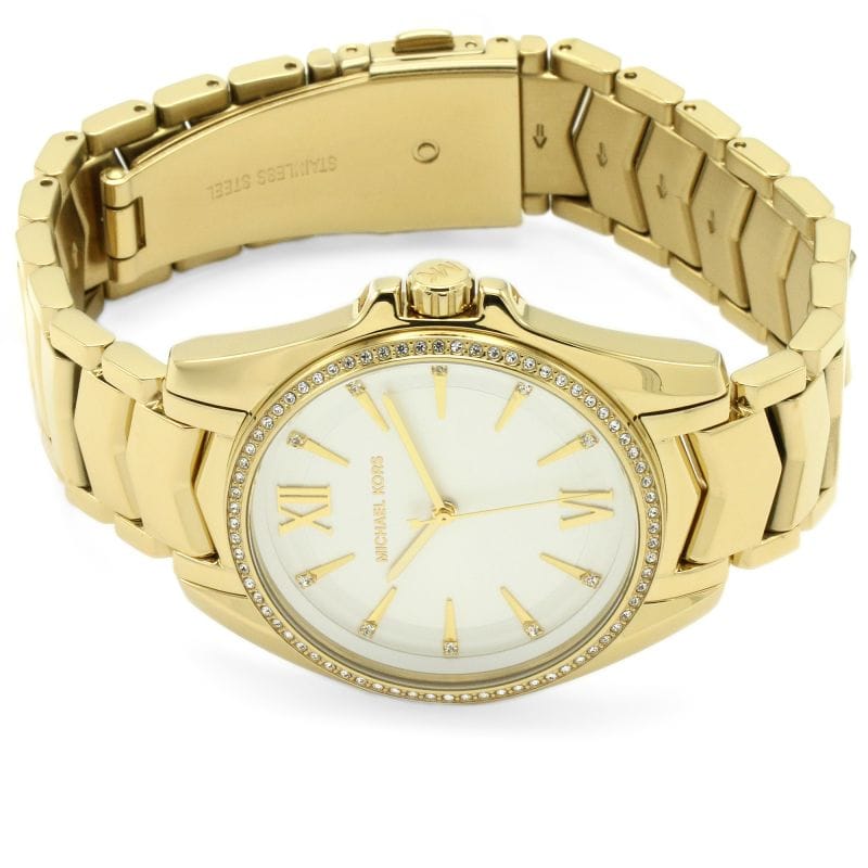 Michael Kors Whitney Three-Hand White Dial Gold Steel Strap Watch For Women - MK6693