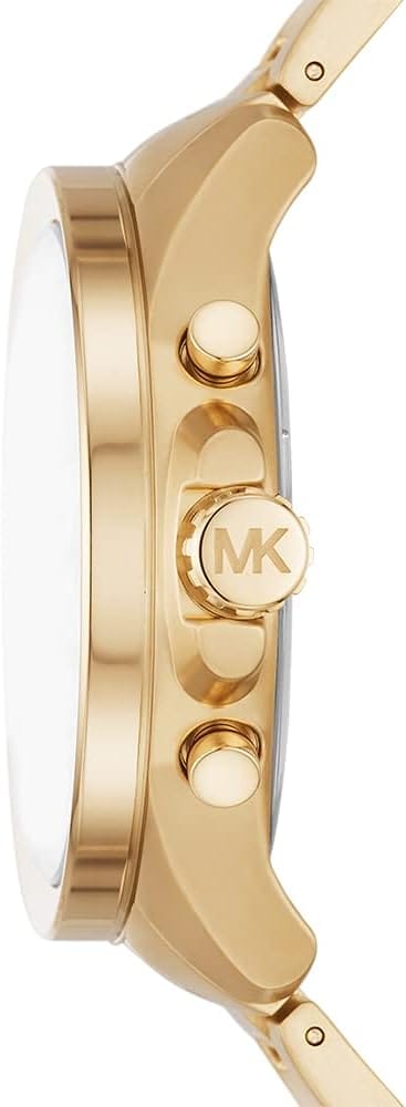 Michael Kors' 44mm Wren watch features a gold sunray dial with pavé sub-eyes and Roman numeral indexes, gold-tone case, chronograph movement and gold-tone stainless steel bracelet.