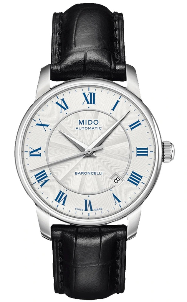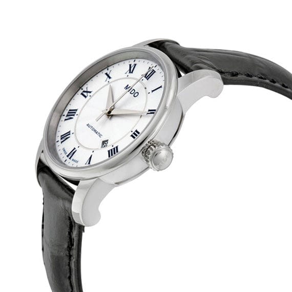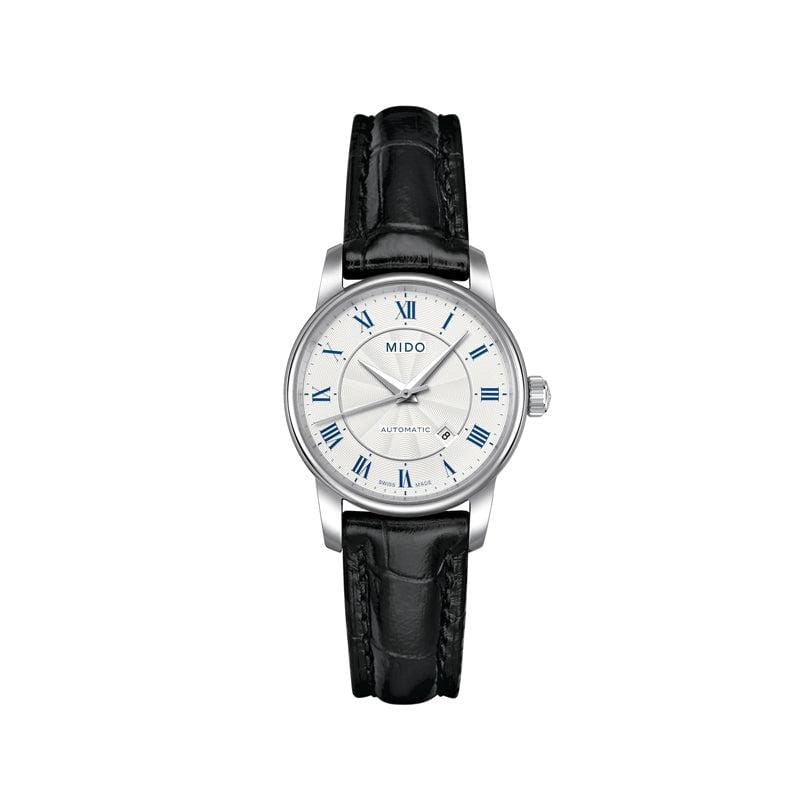 Mido Baroncelli III Automatic Silver Dial Black Leather Strap Watch For Women - M7600.4.21.4