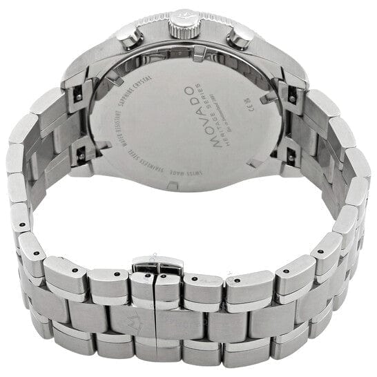 Quartz movement. Scratch resistant sapphire crystal. Pull / push crown. Solid case back. Round case shape, case size: 42 mm. Tang clasp. Water resistant at 50 meters / 165 feet. Functions: chronograph, date, hour, minute, second. Heritage Series. Sport watch style. Watch label: Swiss Made. Movado Heritage Chronograph Quartz Blue Dial Men's Watch 3650124.