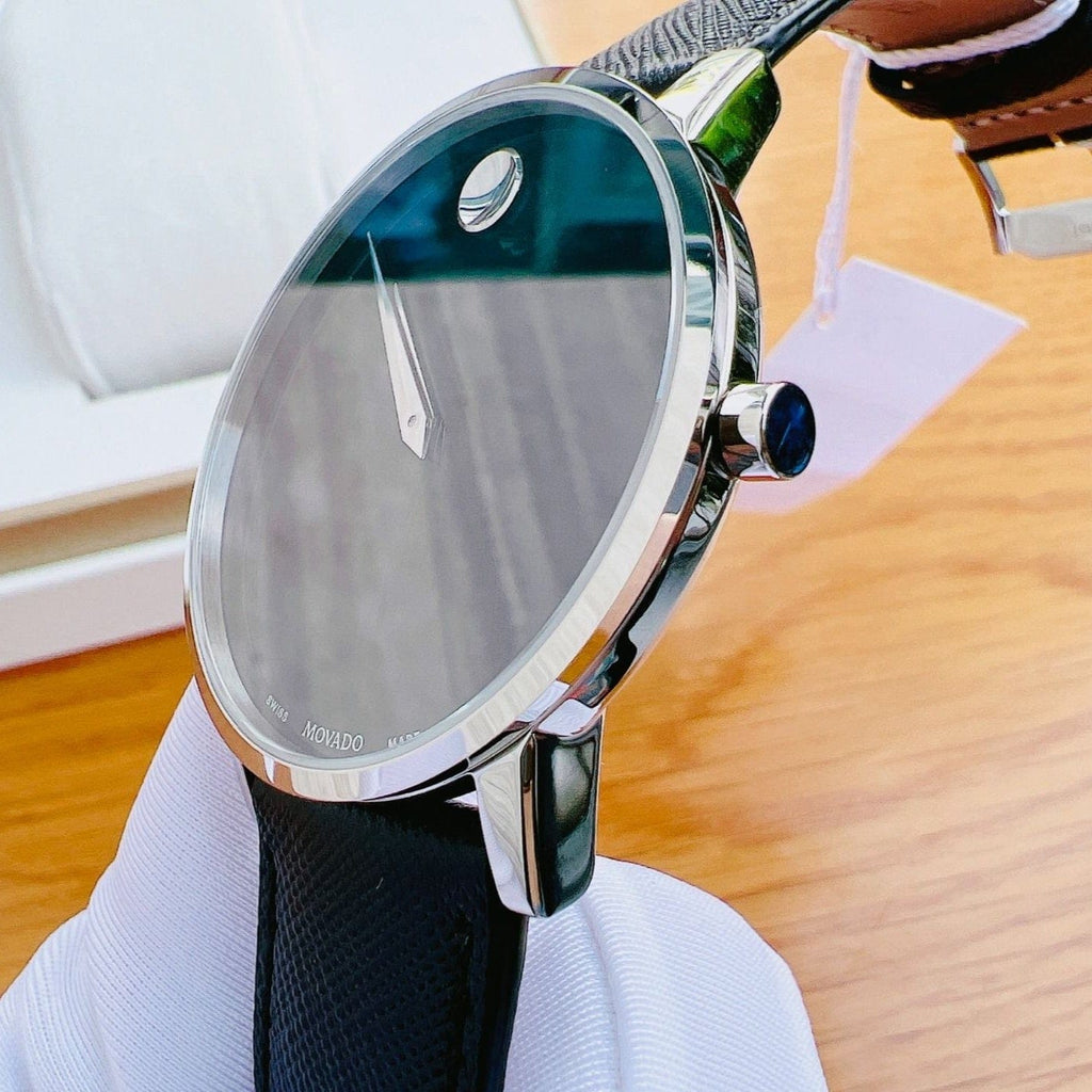 Movado Museum Classic Black Dial Black Leather Strap Watch for Men - 0607194