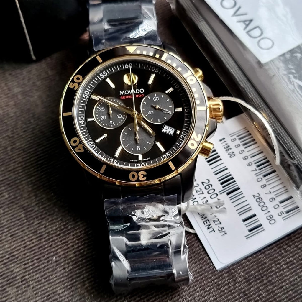 Discover the ultimate combination of style and functionality with the Movado Series 800 Chronograph Watch. Boasting a sleek black steel strap and a bold black dial, this watch exudes confidence and sophistication. With its precise chronograph movement, it's the perfect accessory for any modern man on-the-go. Elevate your look and stay on schedule with the Movado Series 800.