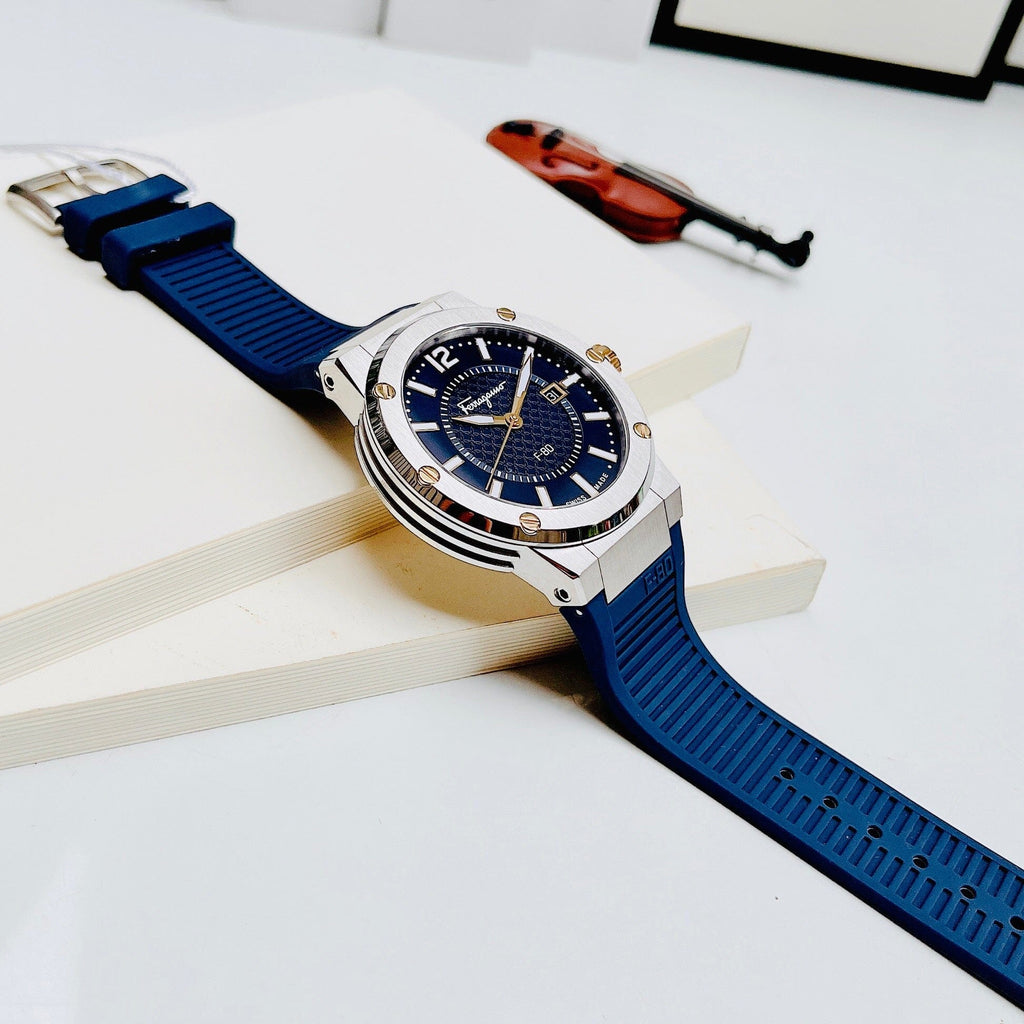 Salvatore Ferragamo F-80 Blue Dial Blue Rubber Strap Watch For Men - SFHY01122
