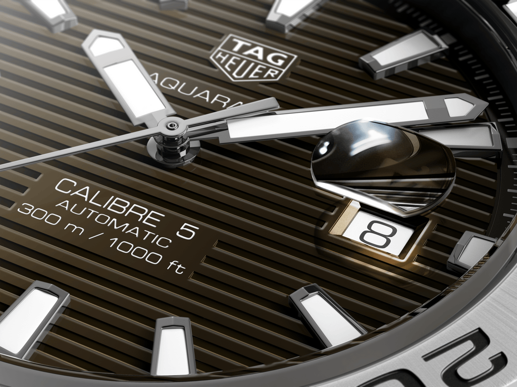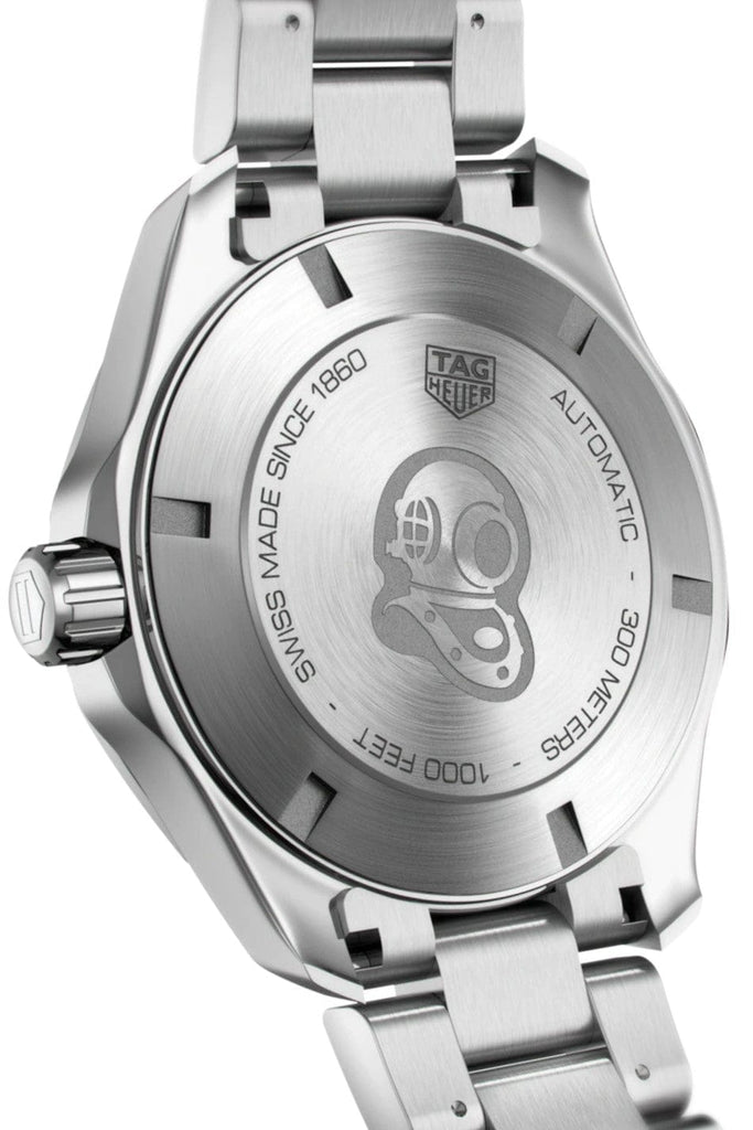 The screw-on case back protects the precise Swiss-made TAG Heuer Calibre 5 movement, vibrating at 28,800 per hour, supplying a power reserve of approximately 38 hours.