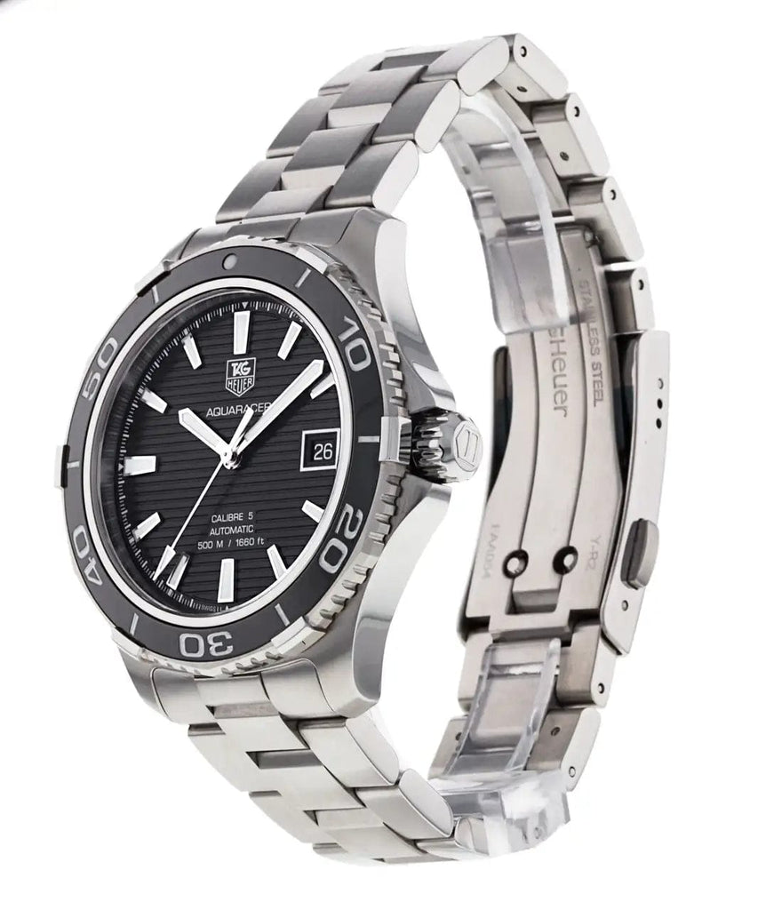 Tag Heuer Aquaracer Caliber 5 Automatic Black Dial Silver Steel Strap Watch for Men - WAK2110.BA0830