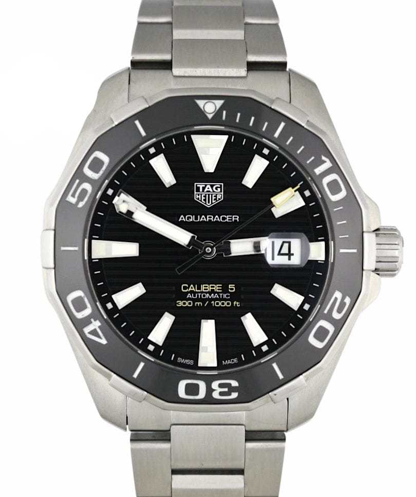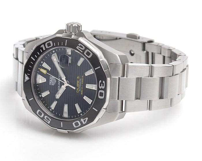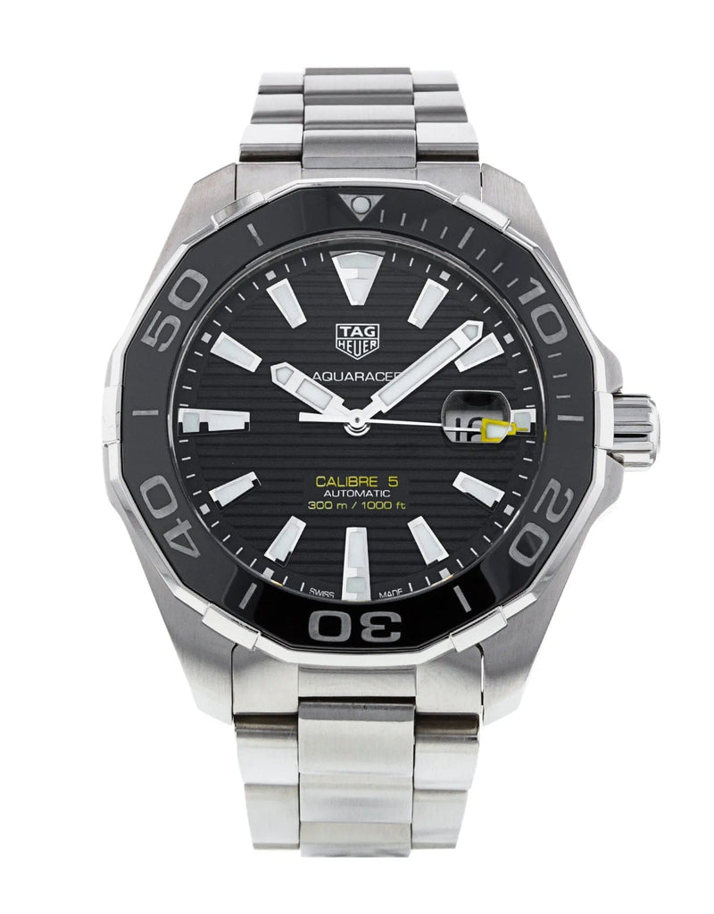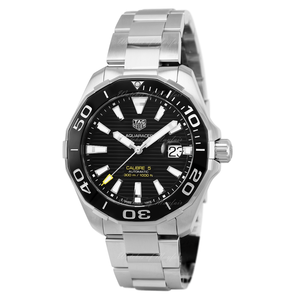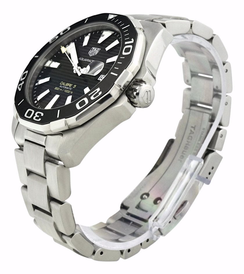 TAG Heuer Aquaracer 43 mm watch. Model reference: WAY201A.BA0927. Stainless steel case. Black dial. Automatic movement. Stainless steel bracelet. Swiss made. The watch comes in the original packaging, with a set of documents and 2 years warranty.
