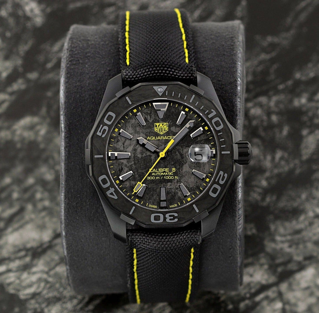 Tag Heuer Aquaracer Calibre 5 Black NATO Strap Carbon Dial Watch for Men - WBD218B.FC6446