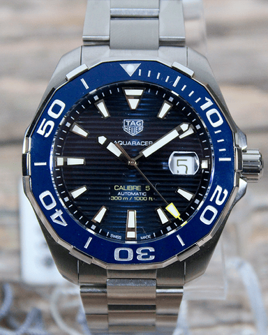 Tag Heuer Aquaracer Calibre 5 Blue Dial Silver Steel Strap Watch for Men - WAY201B.BA0927