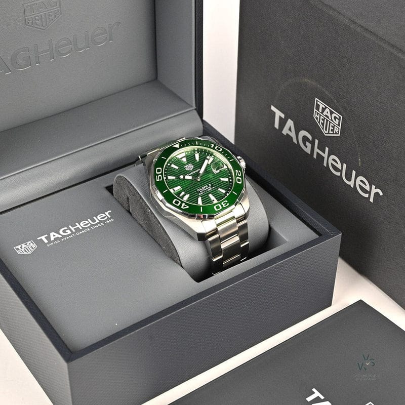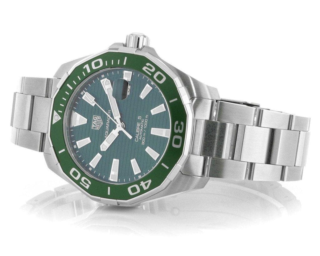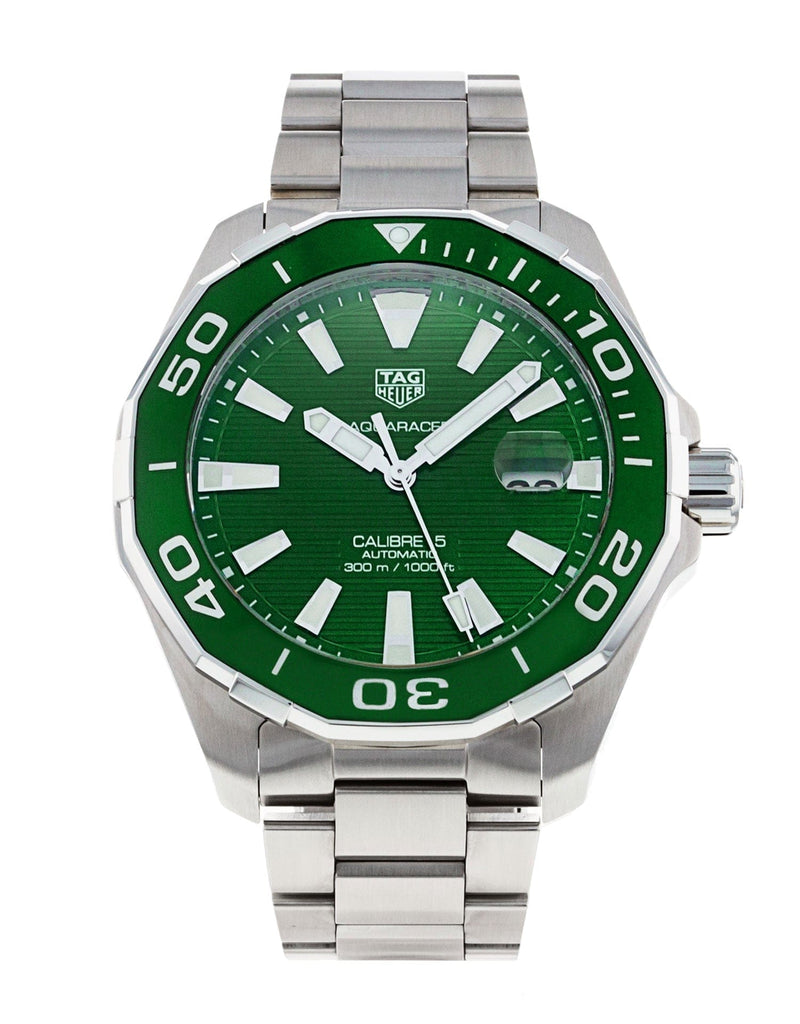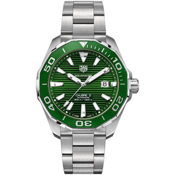 Tag Heuer Aquaracer Calibre 5 Green Dial Silver Steel Strap Watch for Men - WAY201S.BA0927