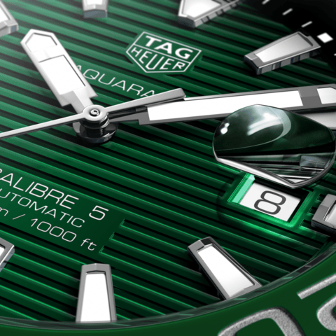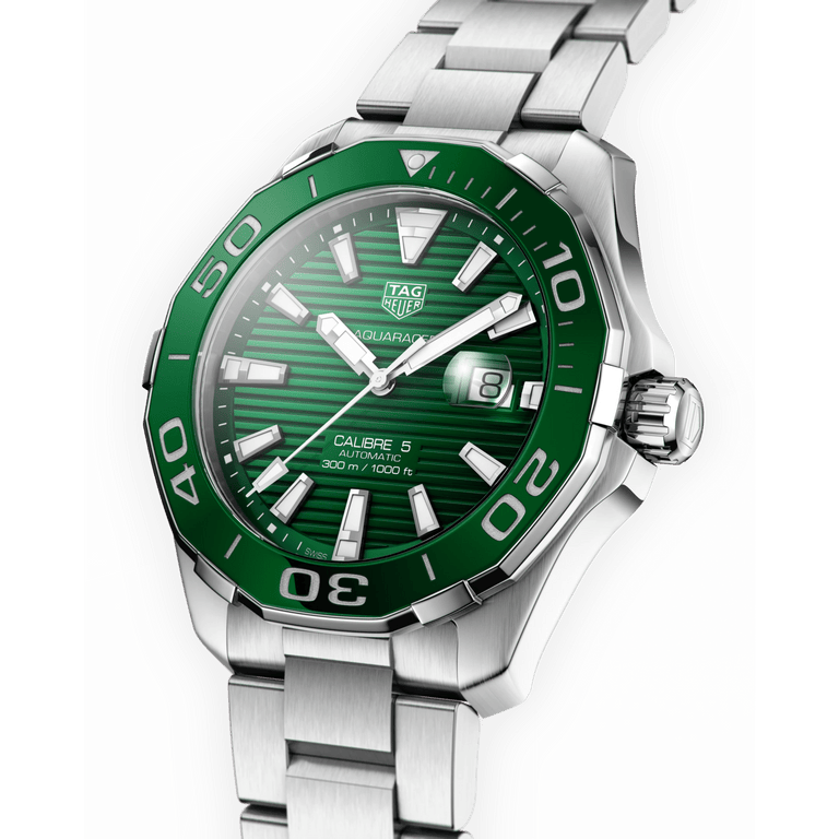 Experience elegance and precision with the Tag Heuer Aquaracer Calibre 5 watch. Designed for men, this watch features a striking green dial and silver steel strap. With its high-quality calibre 5 movement, this watch delivers exceptional accuracy and reliability. Elevate your style with this luxurious timepiece.