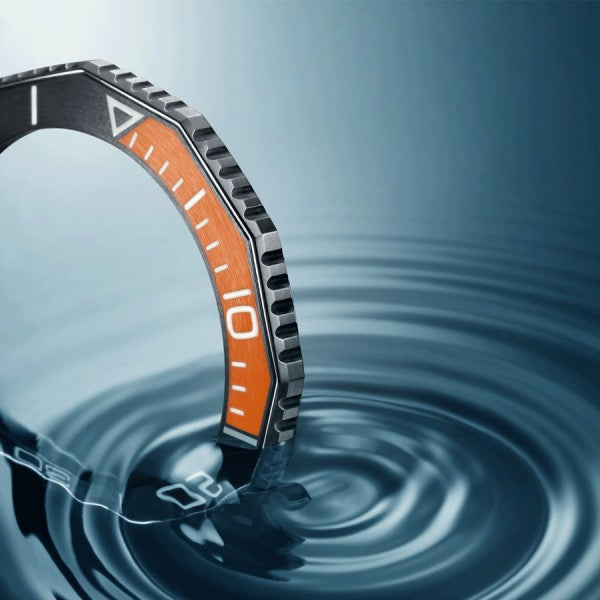 The black sunray brushed dial has large indexes and hands filled with Super-LumiNova®, as well as all the markings on the bezel to ensure visibility when it matters.