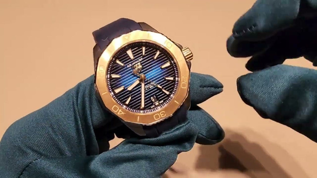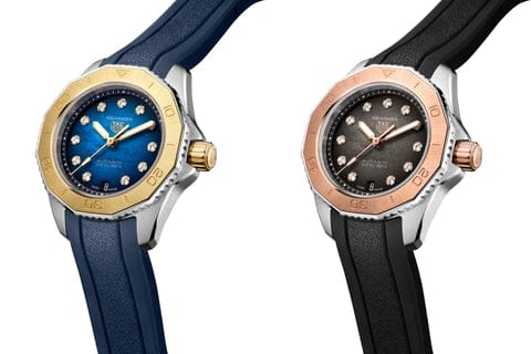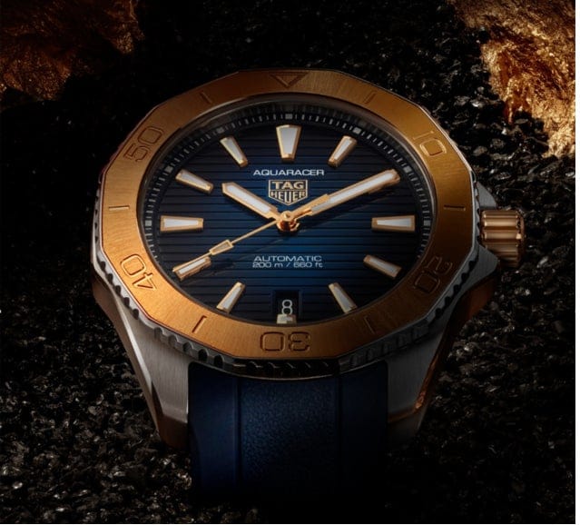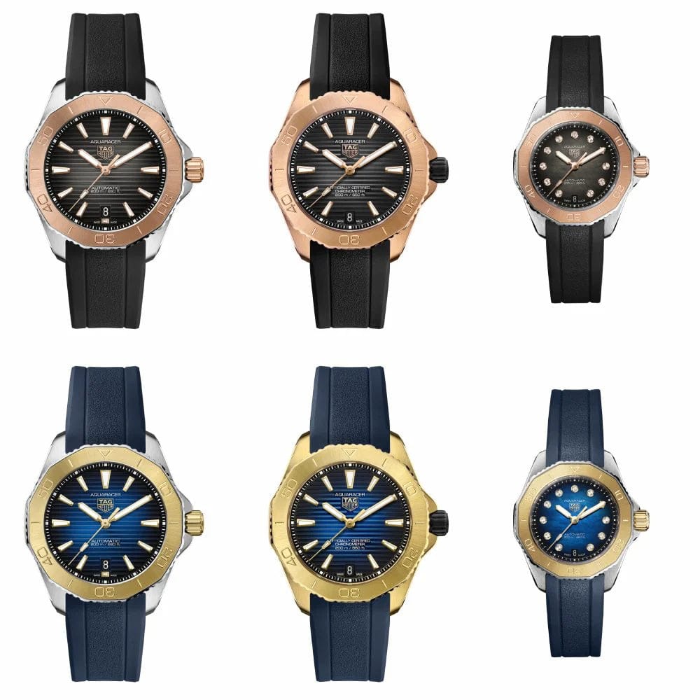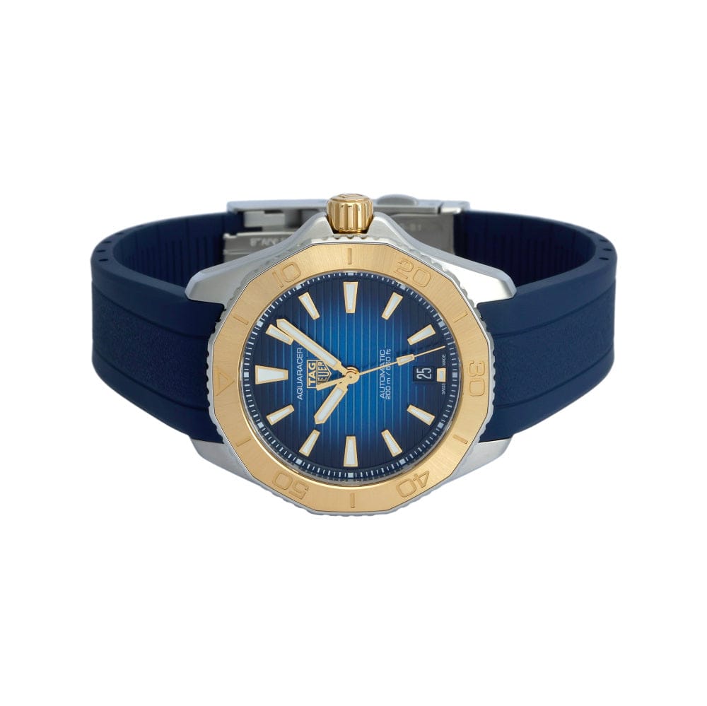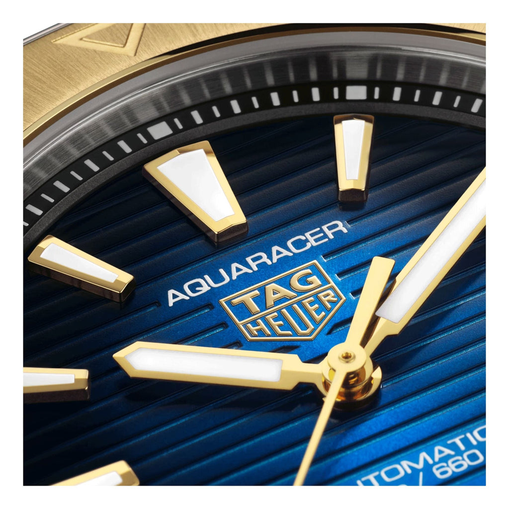 Elegance is in every detail of this prestigious TAG Heuer Aquaracer, blending the strength of 18K 3N solid yellow gold with sporty rubber. Overcome your limits with this uniquely styled watch, designed for those who dare to go further.