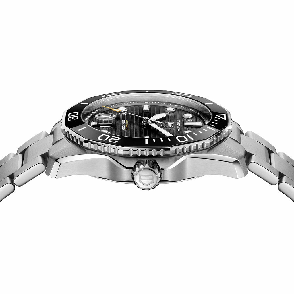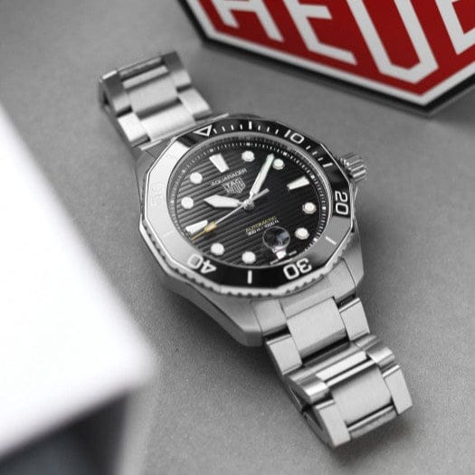 Built for diving, the new TAG Heuer Aquaracer with a black sunray brushed dial is the ultimate everyday watch. Updated with a new case and bracelet and powered by the automatic Calibre 5, the Aquaracer raises the bar for performance.