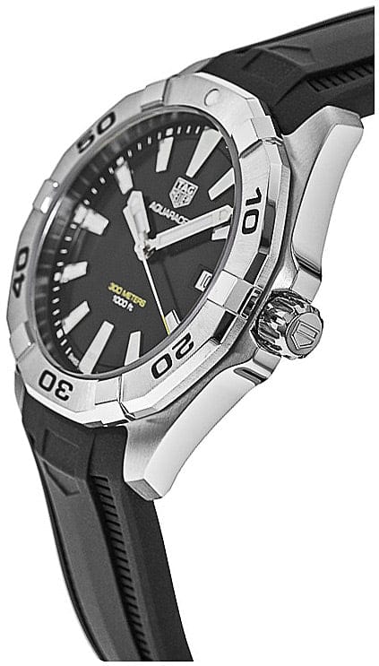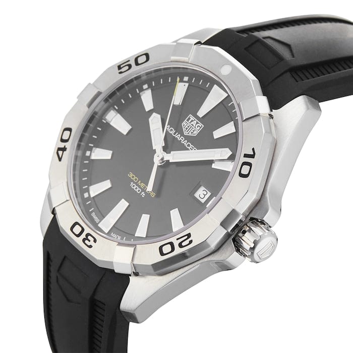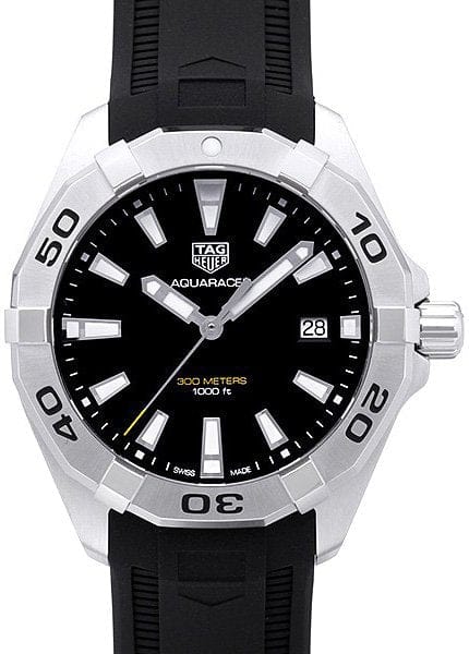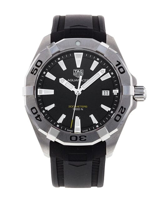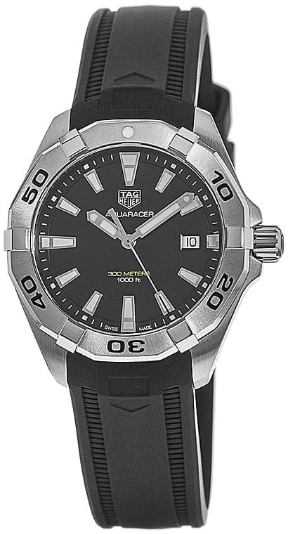 Swiss-made, this bold TAG Heuer Aquaracer is an aesthetic 41 mm watch. This model features a Steel case and a Quartz movement.
