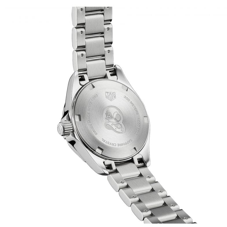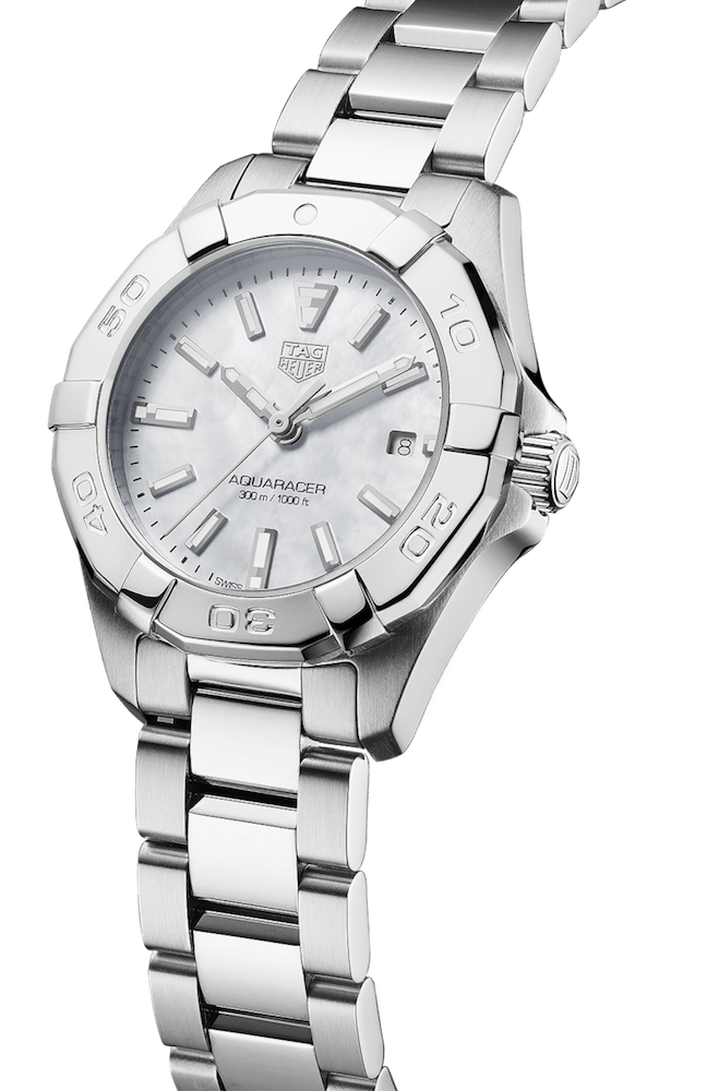 At its heart, this TAG Heuer Aquaracer watch boasts a quartz movement, considered one of the most reliable and accurate made in Switzerland, promising an almost perfect precision with a variation of only a few seconds per month. For one final touch of sophistication, this TAG Heuer watch for women is fitted with a stainless steel bracelet and a folding style clasp with double safety push-buttons and diving extension.