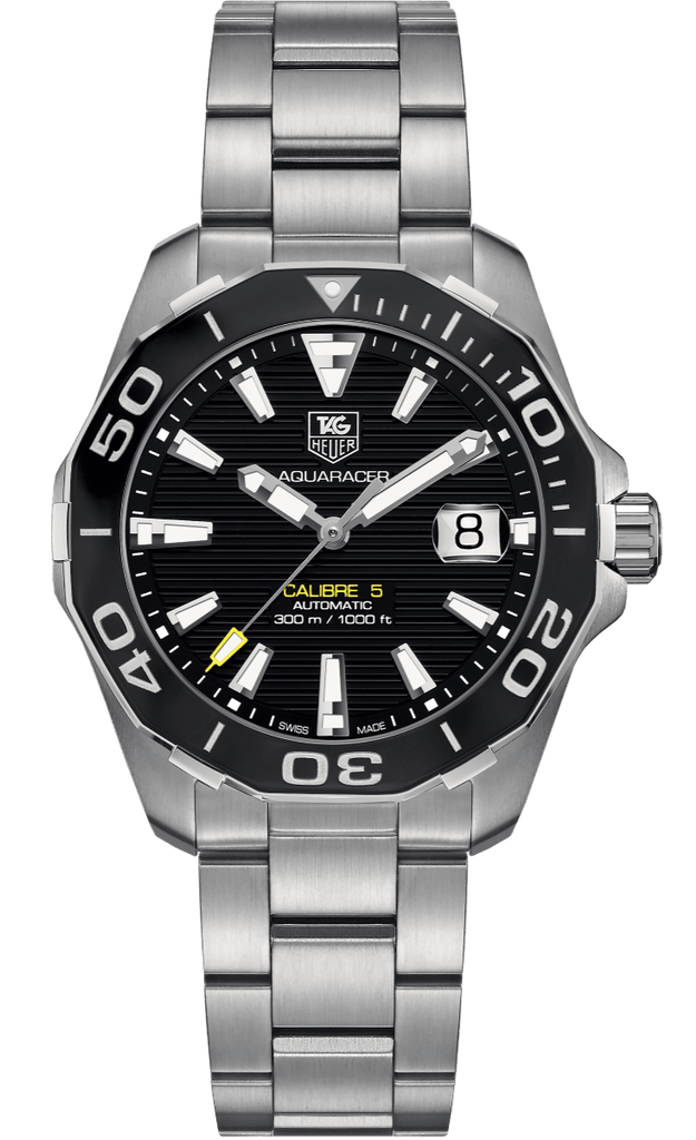 Tag Heuer Aquaracer Automatic Black Dial Silver Steel Strap Watch for Men - WAY211A.BA0928