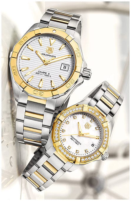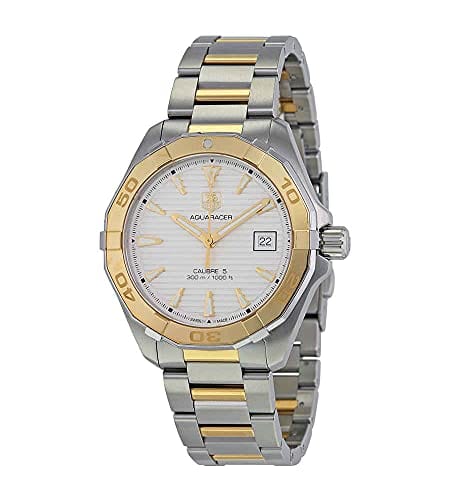 Expertly crafted with precision and style in mind, the Tag Heuer Aquaracer watch for men boasts a sleek two-tone steel strap and a white dial. The automatic movement ensures accurate timekeeping while the durable materials offer long-lasting wear. A perfect combination of functionality and elegance.