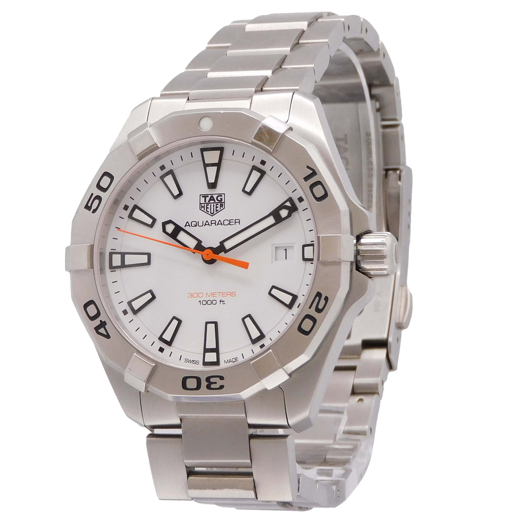 Swiss-made, this bold TAG Heuer Aquaracer is an aesthetic 41 mm watch. This model features a Steel case and a Quartz movement.
