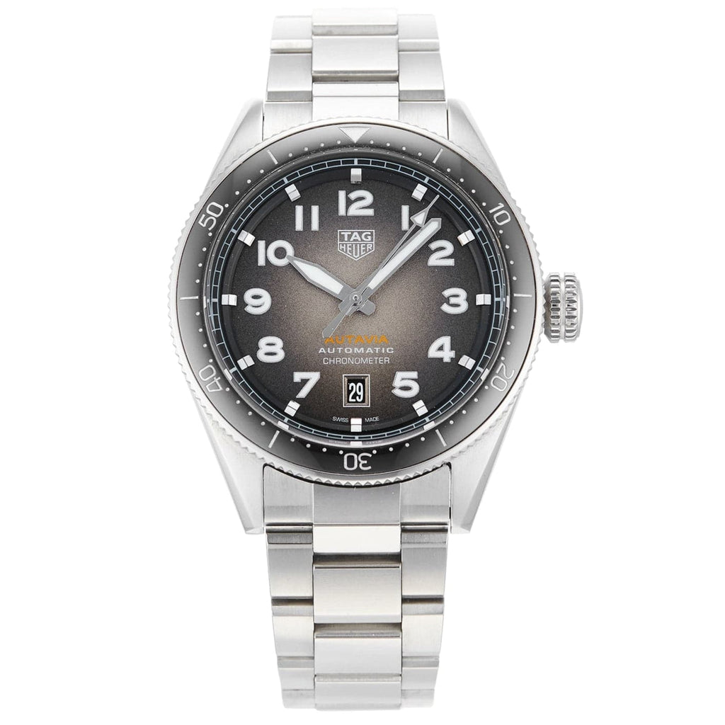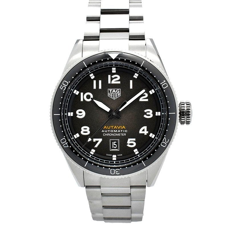 Ease of use and optimal legibility inform the Autavia dial and case design. The numerals and hands are coated with white Super-LumiNova®. The turning bezel is bidirectional.