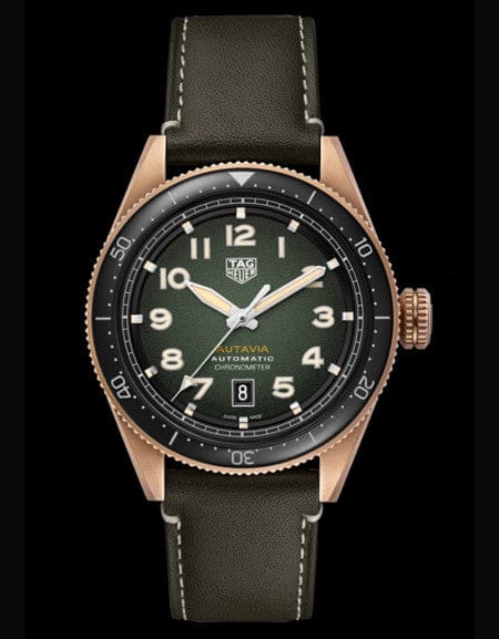 Tag Heuer Autavia Calibre 5 Automatic Olive Green Dial Green Leather Strap Watch for Men - WBE5190.FC8268