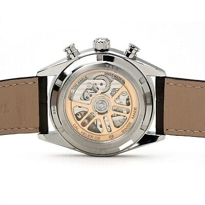 Water resistant up to 100 meters, this TAG Heuer Carrera gets a minute counter at 3 o’clock and hour counter at 9, and permanent second indicator at 6.