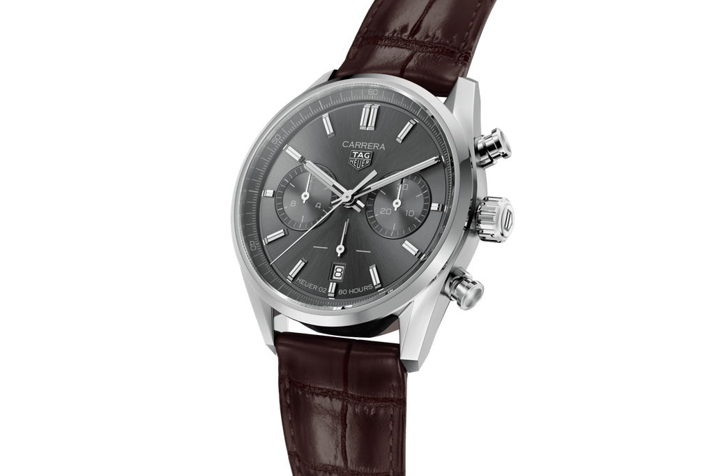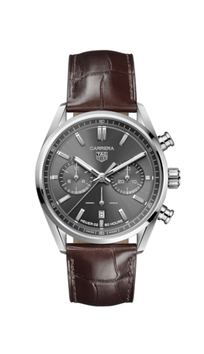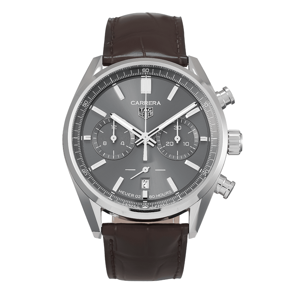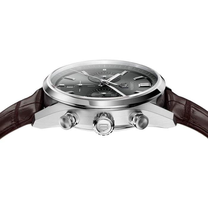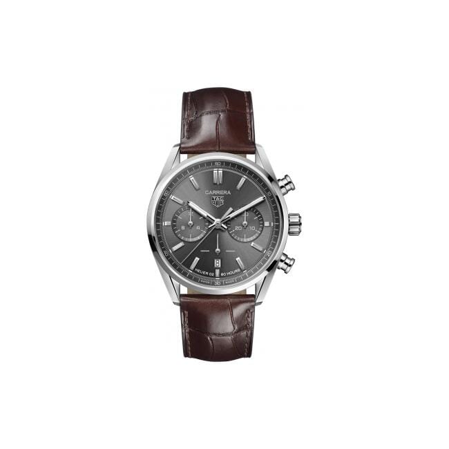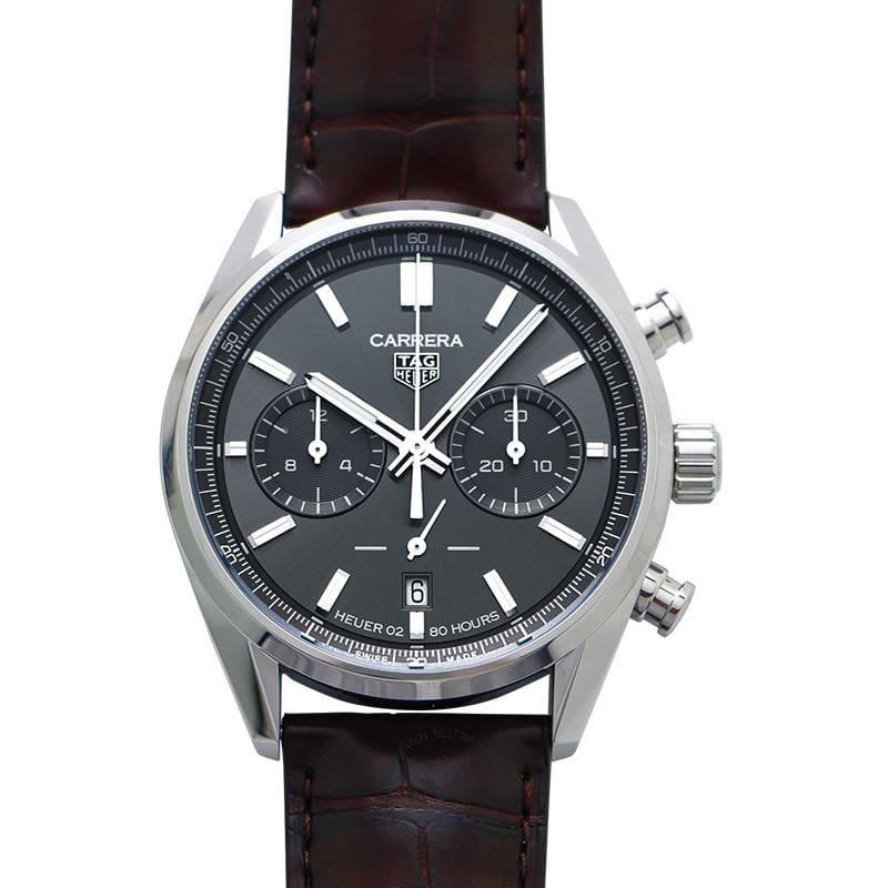 Tag Heuer Carrera Chronograph Grey Dial Brown Leather Strap Watch for Men - CBN2012.FC6483
