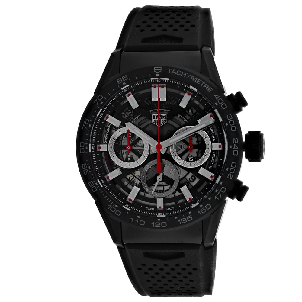 Tag Heuer Carrera Chronograph Steel & Ceramic Black Dial Black Rubber Strap Watch for Men - CBG2090.FT6145