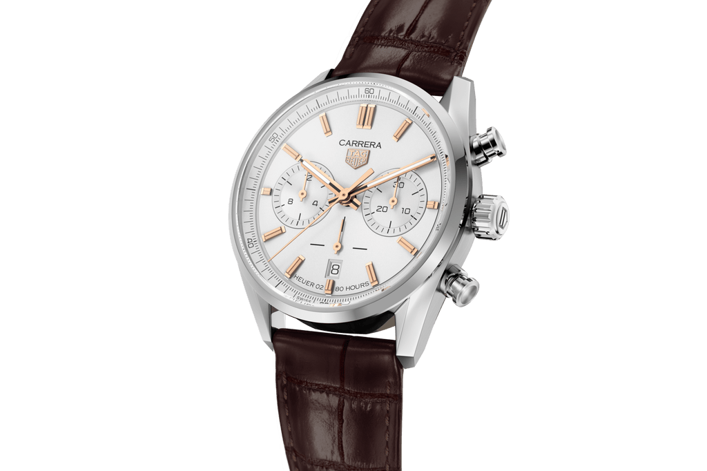 A true iconic chronograph, from the stunning strap to the 5N rose-gold plated accented dial, a 42mm refined watch, bringing together formidable Swiss watchmaking credentials and modern elegance.