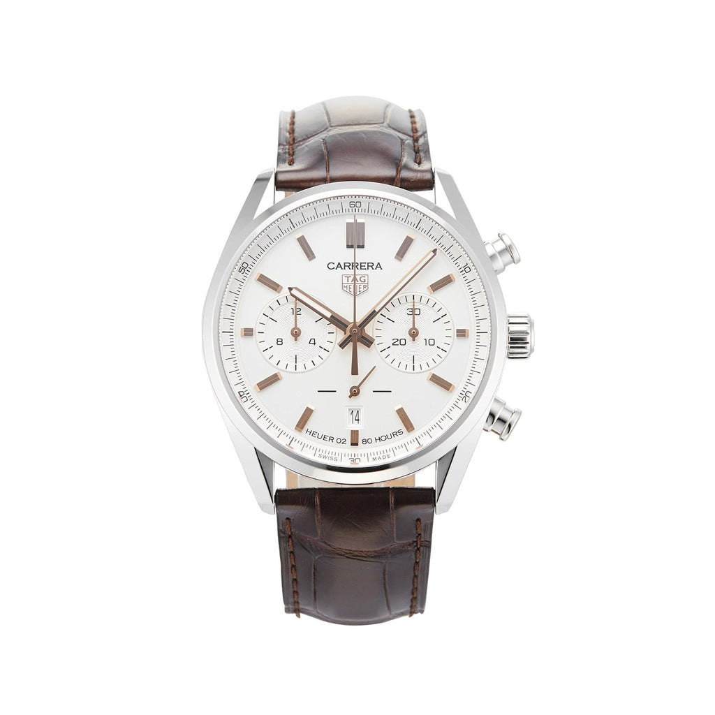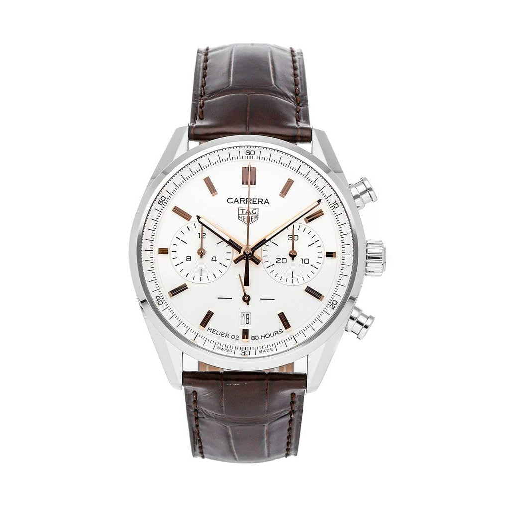 Tag Heuer Carrera Chronograph White Dial Brown Leather Strap Watch for Men - CBN2013.FC6483