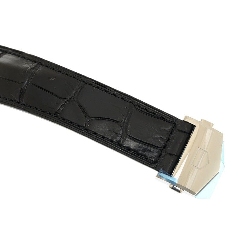 Contrasting with the dial, the black alligator strap is secured safely thanks to a steel folding clasp with applied TAG Heuer logo and double safety push buttons.