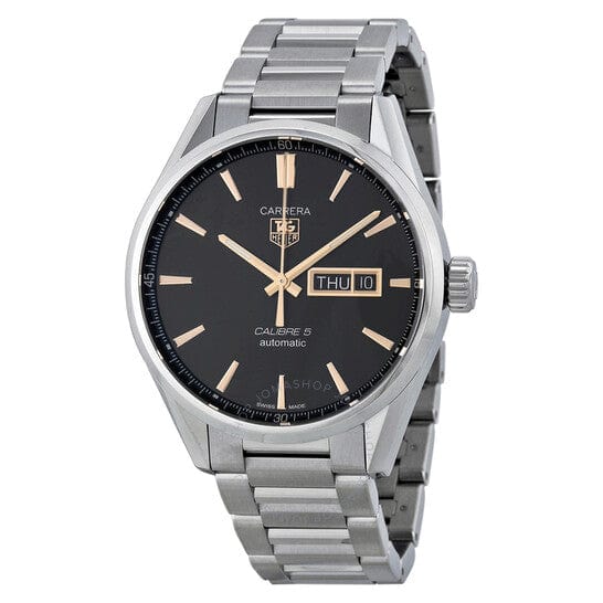 Tag Heuer Carrera Day Date Black Dial Silver Steel Strap Watch for Men - WBN2013.BA0640