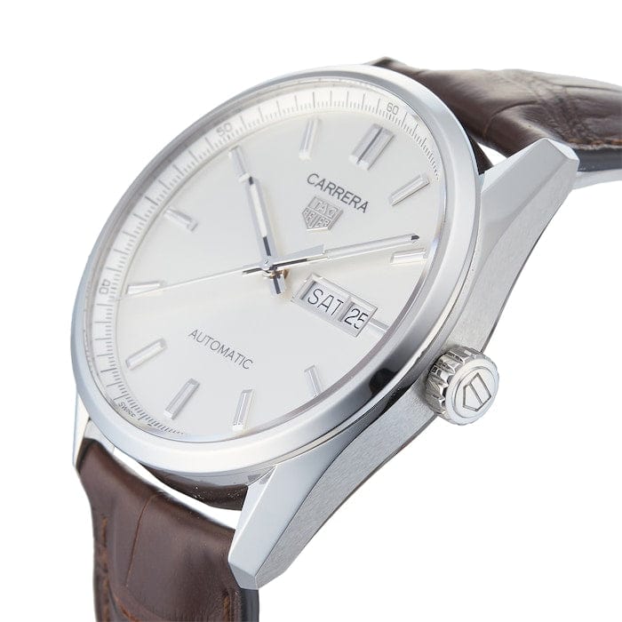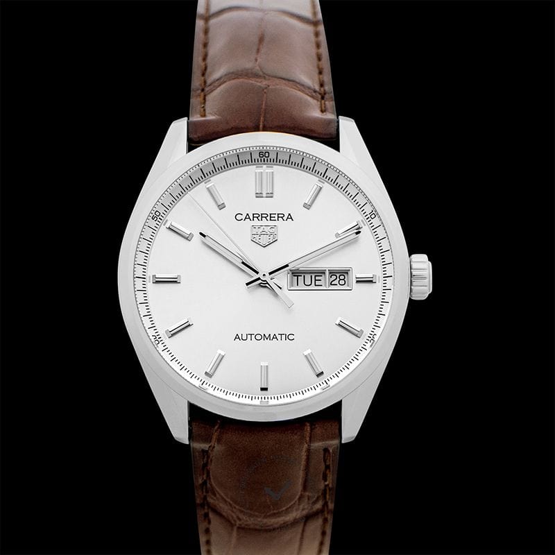 Tag Heuer Carrera Day Date Silver Dial Brown Leather Strap Watch for Men - WBN2011.FC6484