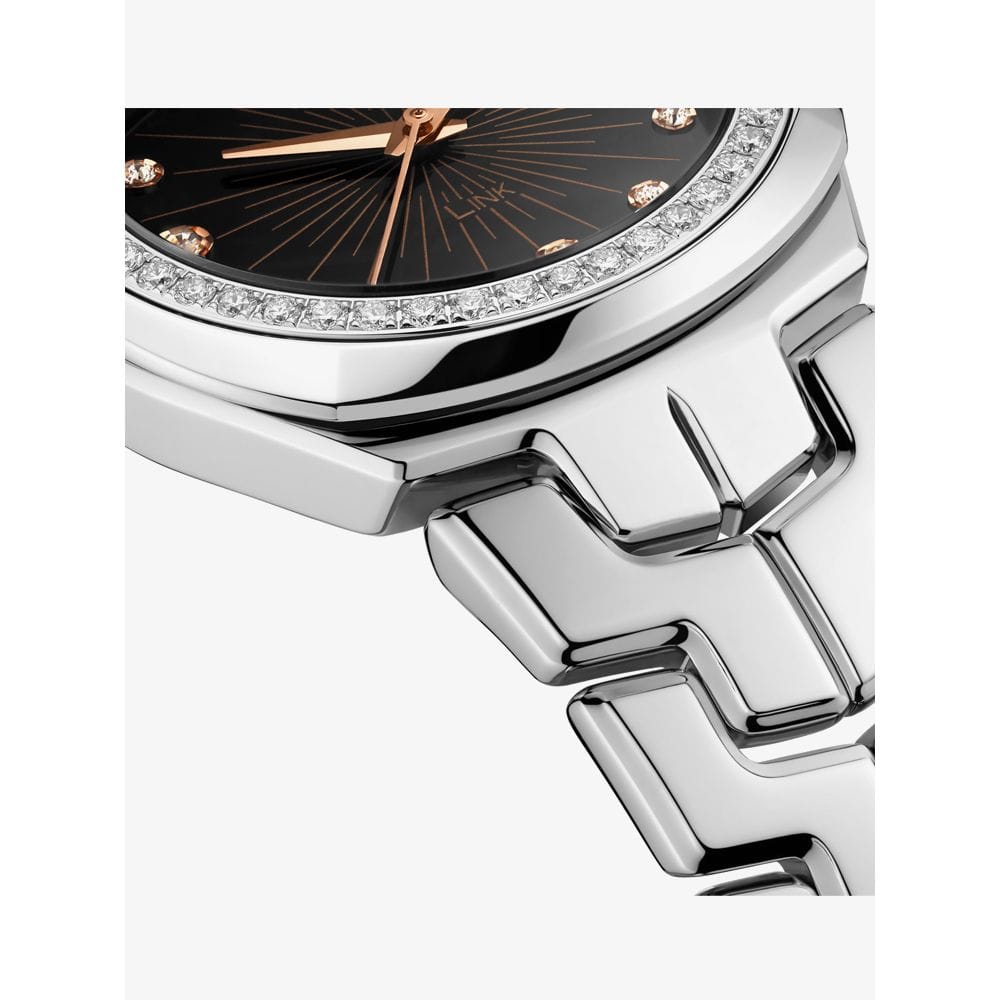 Luxury and elegance merge in this 32mm TAG Heuer Link. In addition to its iconic S-shaped bracelet, this watch has a black dial who scintillate, and index with diamonds (0.16 ct). Its bezel also has 48 diamonds (0.68 ct), which addorn perfectly the rose gold details of applied indices and the dial.