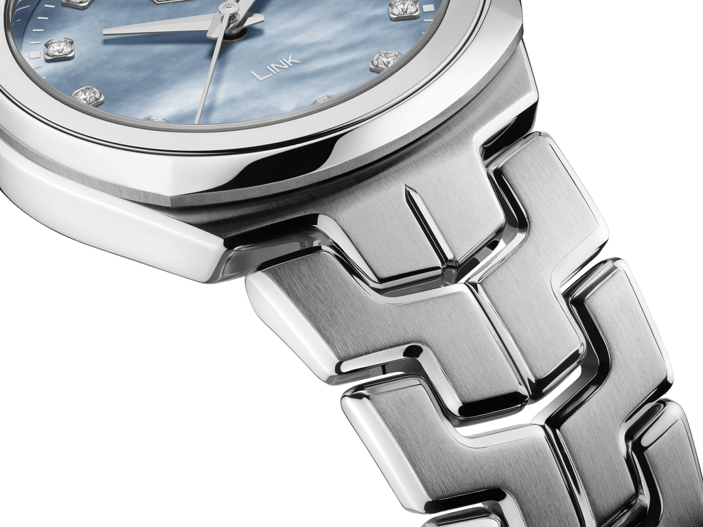 This TAG Heuer Link Ladies Watch WBC1313.BA0600 features a 32mm (approximate size) stainless steel case fitted with a diamond set blue mother of pearl dial, sapphire crystal glass, and a date complication. Powered by a quartz movement, this stunning timepiece is also fitted with a stainless steel bracelet finished with a folding clasp for added security. This timepiece is water resistant to 100 metres.