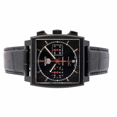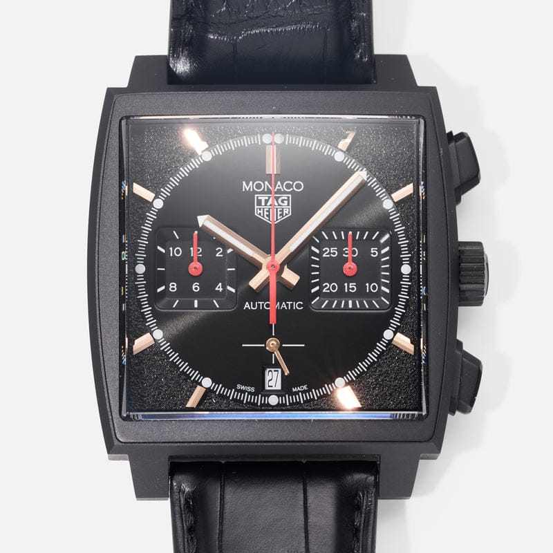 Paying homage to the rare and mythical all-black Monaco of the 70s, this TAG Heuer Monaco Special Edition is a must have for connoisseurs. A fiercely elegant 39mm black DLC titanium case, houses the indomitable manufacture Calibre Heuer 02.