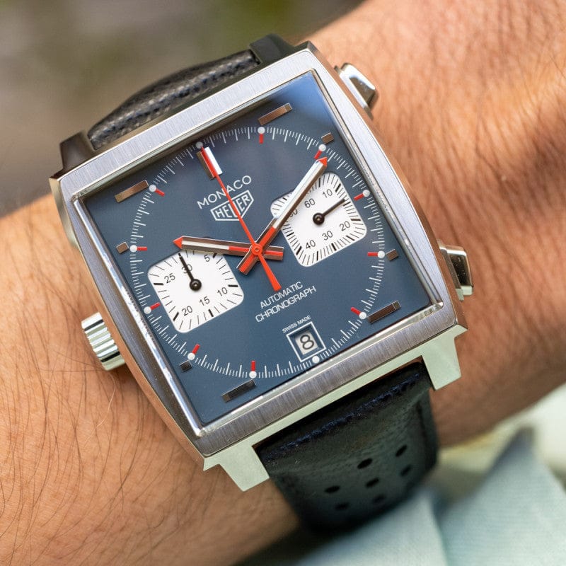 First seen on the wrist of Steve McQueen’s in the classic race film Le Mans in 1969, the Monaco is a timeless icon of revolutionary design.