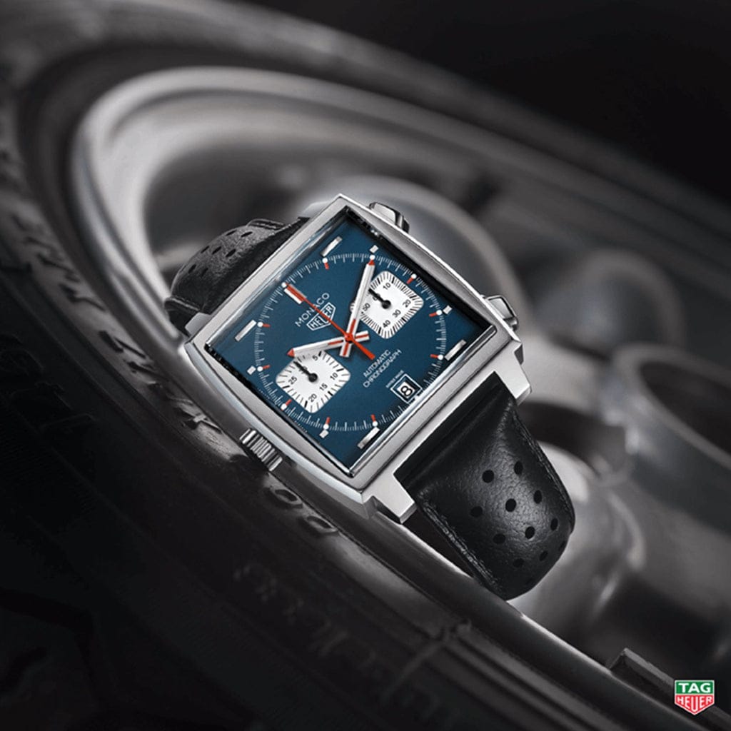 A timeless emblem of rebellious style, the Monaco collection is characterised by a unique, square case represents a move away from traditional watch design.