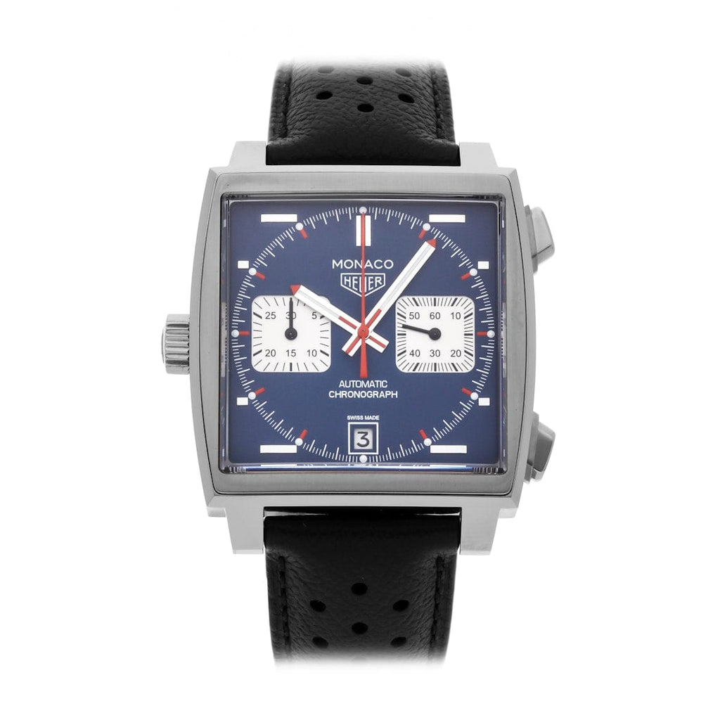 Tag Heuer Monaco Automatic Chronograph Blue Dial Black Leather Strap Watch for Men - CAW211P.FC6356