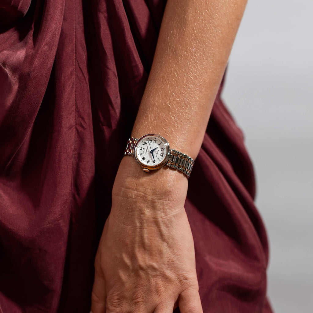 Expertly crafted for women, the Tissot Bellissima Automatic watch boasts a sleek silver dial and a luxurious two-tone steel strap. With its automatic movement, this timepiece offers precision and convenience. Elevate your style with this elegant and reliable watch.